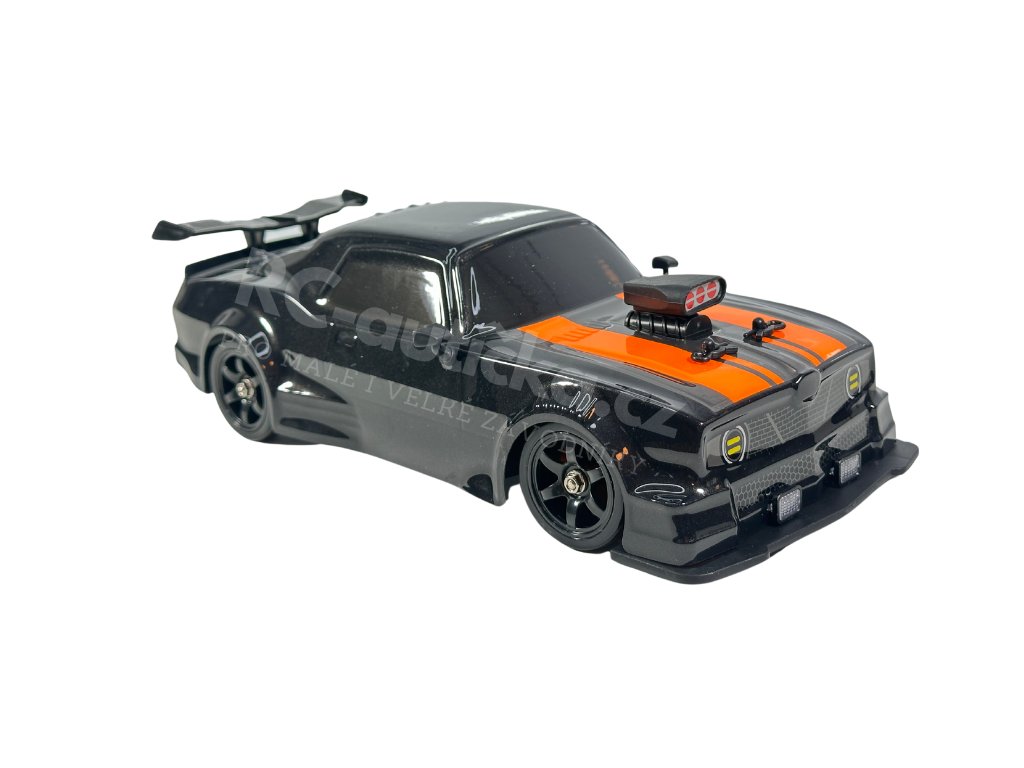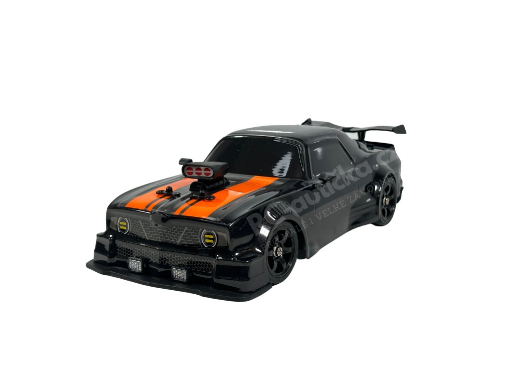 Model driftovacího auta na dálkové ovládání v měřítku 1:16 je skvěle zpracovaný a vyrobený z odolného plastu, což zajišťuje dlouhou životnost a vysokou odolnost. Auto je vybaveno pohonem 4x4 a LED světly, která zahrnují přední svítilny a modře podsvícený výfuk, který je možné ovládat dálkovým ovladačem. Díky tomu můžete aktivovat kouřový efekt, který přidá na realističnosti jízdy. Karoserie auta je upevněna pomocí svorek (součástí jsou balení jsou 4 náhradní svorky), což umožňuje její snadné sejmutí. Součástí balení je i nádobka na vodu, kterou nalijete do spodní části auta, čímž aktivujete efekt kouře vycházejícího z výfuku.