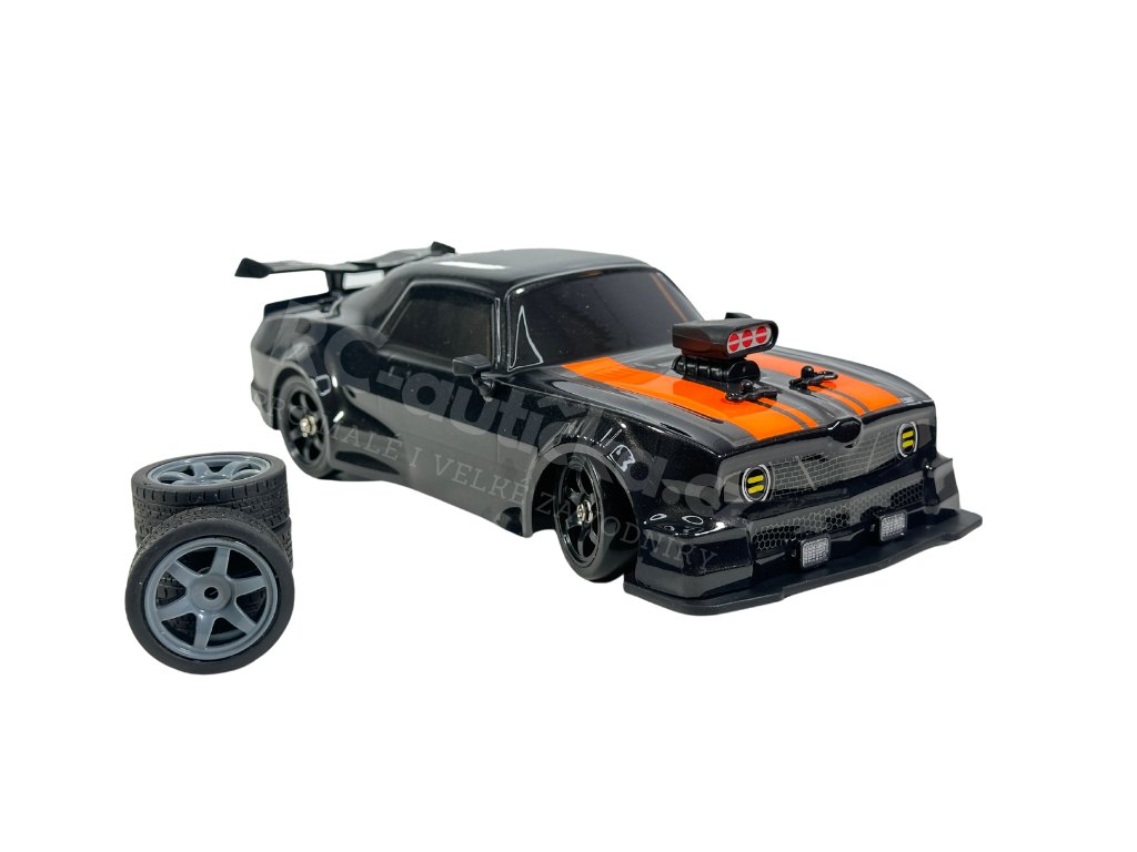 Tento model je navržen tak, aby sloužil jako driftovací auto, ale po snadné výměně kol se může stát i klasickým RC autem. Balení obsahuje druhou sadu silničních pneumatik a klíč pro jejich výměnu, což vám umožní přizpůsobit auto dle potřeby. Auto je poháněno akumulátorem Li-ion o kapacitě 7,4 V a 500 mAh, který poskytuje až 20 minut jízdy na jedno nabití. Nabíjení probíhá pomocí USB nabíječky (je součástí balení), a pro delší dobu jízdy můžete zakoupit náhradní akumulátor. Ovládání auta je jednoduché díky pistolovému ovladači na frekvenci 2,4 GHz, který má dosah až 35 metrů, což je ideální pro pořádání závodů, aniž by docházelo k rušení signálu mezi modely.